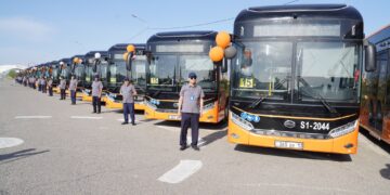 ТҮРКІСТАННЫҢ АВТОПАРКІ ЖАҢАРЫП, ЖҮРГІЗУШІЛЕРГЕ 35 ЖАҢА АВТОБУС КІЛТІ ТАПСЫРЫЛДЫ