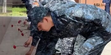 ШЫМКЕНТТЕ ПОЛИЦЕЙЛЕР ЕРЛІКПЕН ҚАЗА ТАПҚАН ҚЫЗМЕТКЕРЛЕРГЕ АРНАЛҒАН ЕСКЕРТКІШКЕ ГҮЛ ШОҚТАРЫН ҚОЙДЫ